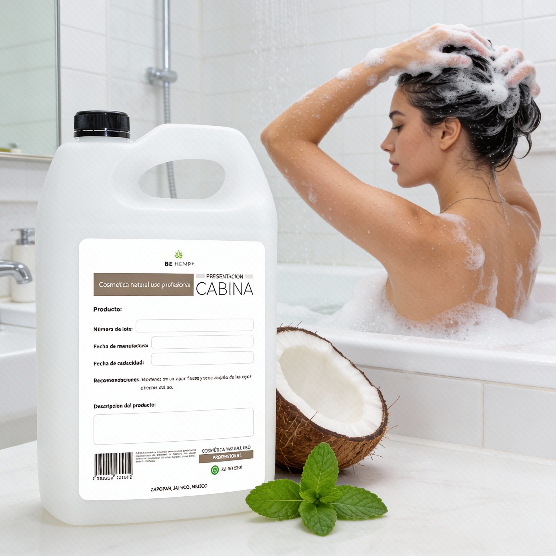 Shampoo de coco y menta 1 galón | Biodegradable, Sin Sulfatos ni Parabenos